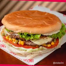 Hamburguer bovino, bacon, presunto, queijo mussarela, ovo, milho, ervilha, tomate, alface e molho especial